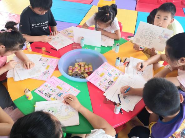 最后一個環(huán)節(jié),孩子們拿起畫筆diy安全主題繪本手冊,用色彩把情緒幻想付于紙上,安靜的教室里,孩子們逐漸摸索到了安放情緒的保護(hù)傘。