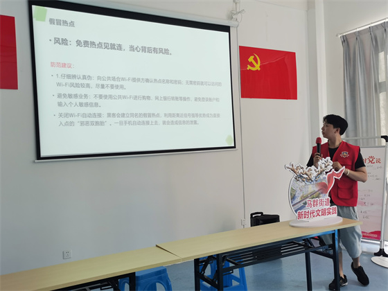為進(jìn)一步強(qiáng)化轄區(qū)居民的網(wǎng)絡(luò)安全意識,使他們正確掌握和應(yīng)對常見的網(wǎng)絡(luò)安全風(fēng)險,預(yù)防和減少網(wǎng)絡(luò)詐騙帶來的經(jīng)濟(jì)損失,6月21日下午,南京市棲霞區(qū)馬群街道向上社區(qū)新時代文明實踐站在社區(qū)大會議室開展以“網(wǎng)絡(luò)安全為大家 平安社區(qū)靠大家”為主題的網(wǎng)絡(luò)安全知識宣傳講座,共計14位轄區(qū)居民參與了本次活動。