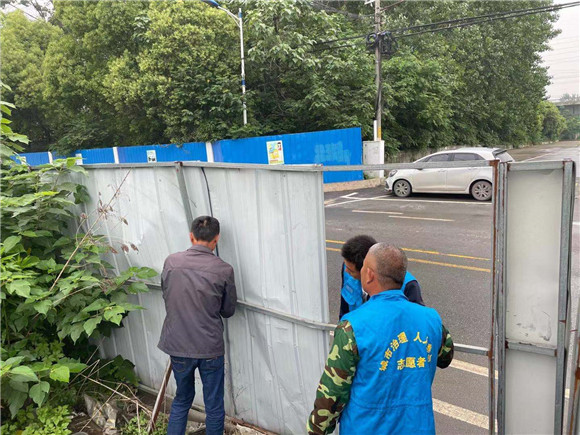 志愿者們立即帶上電鉆、鉗子、鐵絲等工具,對倒伏和破損的圍擋進行修繕、固定。通過一個多小時的努力,圍擋得到修復,安全得以保障。同時,在修理圍擋之時也將屯在圍擋里面的垃圾清理干凈,使環(huán)境衛(wèi)生問題也得到了很好的整治。此次社區(qū)迅速處置倒塌事件消除安全隱患的做法,受到了周邊居民的稱贊與好評。