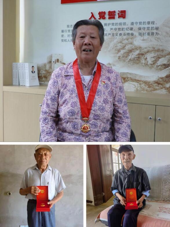 金黃的紀念章為榮譽加冕,戴上紀念章的老黨員們露出了自豪的笑容,在鏡頭前肅穆而立,一如從前。