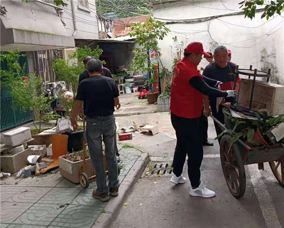 火瓦巷居社區(qū)與志愿者、居民群眾清理小區(qū)環(huán)境衛(wèi)生