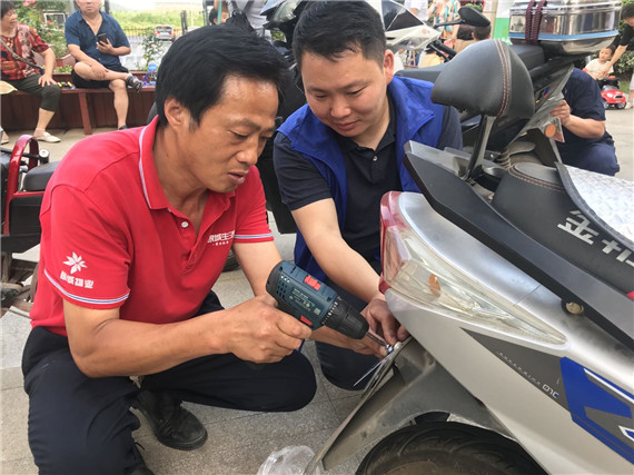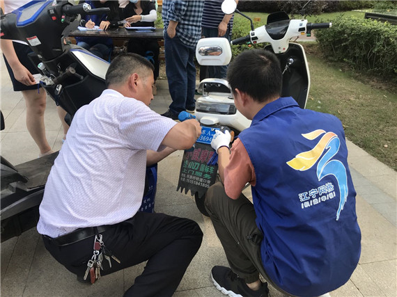 霞輝廟社區(qū)在小區(qū)為居民安裝電動車新牌