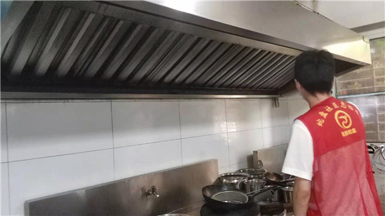 上午,社區(qū)工作人員早早來到了店鋪,店里正在備菜。我們徑直走進后廚,發(fā)現(xiàn)左側灶臺上的抽油煙機有較大油污,督促店家及時清洗。老板在前臺的柜子里翻出了我們街道發(fā)的餐飲店油煙凈化系統(tǒng)清洗臺賬來配合巡查,店鋪基本每個月能做到對油煙凈化器進行一次清洗。