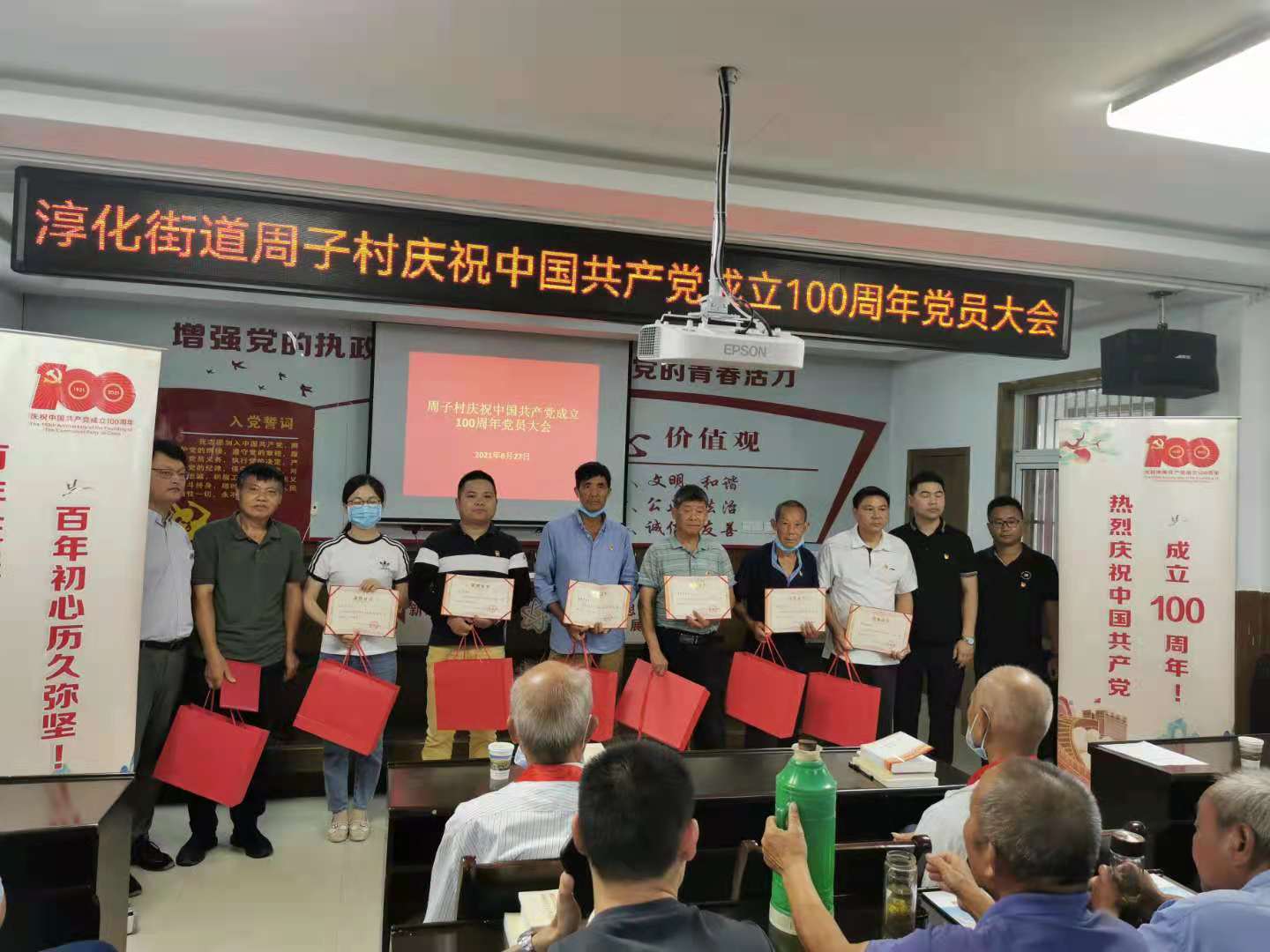 6月27日,南京市江寧區(qū)淳化街道周子村黨總支開(kāi)展慶祝中國(guó)共產(chǎn)黨成立100周年黨員大會(huì)。