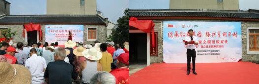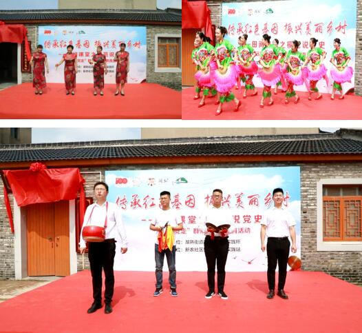 活動(dòng)中,社區(qū)自編自導(dǎo)自演的文藝節(jié)目廣受黨員的歡迎,由社區(qū)志愿者編排表演的快板書《歌頌新農(nóng)新面貌》,贊新農(nóng)社區(qū)美麗鄉(xiāng)村建設(shè),百姓幸福生活;舞蹈《看山看水看中國》,讓黨員感受到如今祖國的美好;三句半《傳承鄒家英雄魂 歌唱新農(nóng)新面貌》,贊美家鄉(xiāng),展望未來,向祖國獻(xiàn)禮,彰顯了青年人的社會(huì)責(zé)任擔(dān)當(dāng),為新時(shí)代鄉(xiāng)村振興奉獻(xiàn)自己的滿腔熱血。同時(shí),李韋書記和龐成春為鄒家紅色教育基地揭牌。