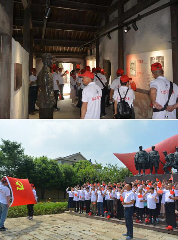黨員踩著石板路,參觀著新四軍將領舊居,認真聆聽講解員的生動講解,現場一間間的紅色舊居、一件件彌足珍貴的實物、一個個感人至深的故事、一段段令人動容的文字、一幀幀褪色發(fā)黃的照片,仿佛拉近了時空距離,讓人身臨其境,看到了那段烽火連天的崢嶸歲月。之后,大家站在紅色李巷紀念碑前,莊嚴的向著黨旗,跟著鶴齡社區(qū)黨總支書記周大海重溫了入黨誓言。