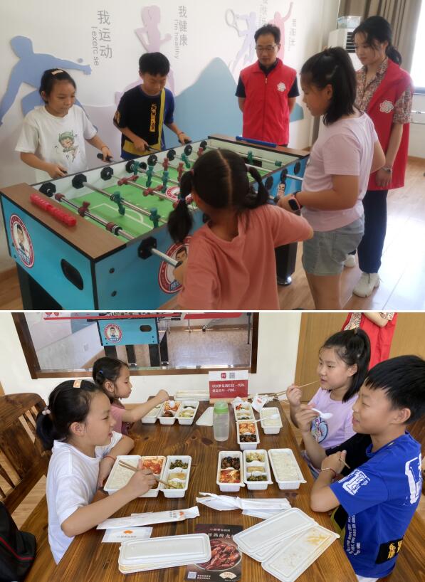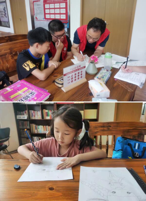 7月12日開課現(xiàn)場,孩子們有的在寫作業(yè),有的在翻看著書籍,遇到難題時,還有社區(qū)志愿者在旁邊作輔導(dǎo)解答。監(jiān)督孩子完成暑假作業(yè)、黨史學(xué)習(xí)教育小課堂、優(yōu)秀書目閱讀欣賞、手工實(shí)驗(yàn)課程、益智游戲環(huán)節(jié)……一系列豐富多彩的活動從動手能力到思考創(chuàng)新能力,全方位地引導(dǎo)孩子們在學(xué)中玩、在玩中學(xué)。“現(xiàn)在有了暑托班,我們家長倒是省了不少心。孩子們能在這邊學(xué)習(xí)和就餐,我們放心又安心了。”家長們樂呵呵地說道。