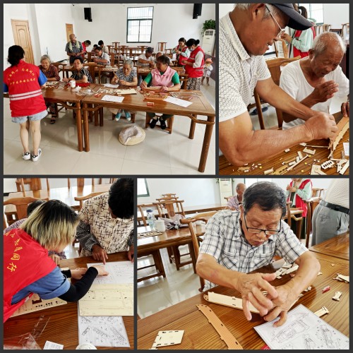 活動(dòng)現(xiàn)場,社工老師給老人們普及了南湖紅船的簡介和名字的由來。同時(shí)通過照片和視頻深入淺出地講述了中國共產(chǎn)黨誕生的歷史過程及紅船精神的重要意義,帶領(lǐng)大家重溫了黨史,了解了老一輩革命家那些鮮活震撼的革命故事;制作開始后,社工老師從模型構(gòu)造、分裝步驟等進(jìn)行了詳細(xì)講解和指導(dǎo),大家認(rèn)真聆聽,互相討論拼裝技巧,最后經(jīng)過一個(gè)小時(shí)的努力,一艘艘承載著愛黨情懷的紅船模型就制作完成了。