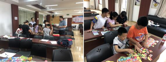 現(xiàn)場,有的孩子認(rèn)真寫著暑假作業(yè),有的孩子與小伙伴一起聊天,討論,有的孩子認(rèn)真看著漫畫書,有的孩子和老師一起聊著學(xué)習(xí)計(jì)劃,之后大家一起做起拼圖游戲,從祖國大地,到美麗的童話世界,三三兩兩進(jìn)行協(xié)作,拼著圖片,現(xiàn)場充滿了歡聲笑語,孩子們在歡樂中,學(xué)習(xí)到知識,也加強(qiáng)了動手能力與交際能力。