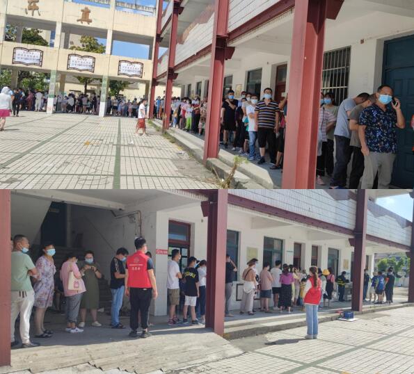 從早上到中午,社區(qū)居民在工作人員的安排下,井然有序地排隊等待著,但由于需要核酸檢測的人數(shù)實在太多,不少居民到中午還未做上核酸檢測,11時20分左右,街道組織委員王婷婷看到排隊的居民又餓又渴的樣子心中十分難受,當即就買來了小面包、小零食和礦泉水發(fā)放到大家手中,看著大家稍稍恢復(fù)了一點狀態(tài),王婷婷心中才有了一點慰藉。除此之外,湖小老師志愿者吳義雷、派出所駐小學(xué)協(xié)警李小海、執(zhí)法大隊隊員石勇等志愿者也都一直在核酸檢測的全程盡心盡力幫助大家,尤其是行動不便的老人,他們更是親自陪伴全程直至核酸檢測完成,送出核酸檢測點的門口,然后才馬不停蹄地跑向下一個需要幫助的人。