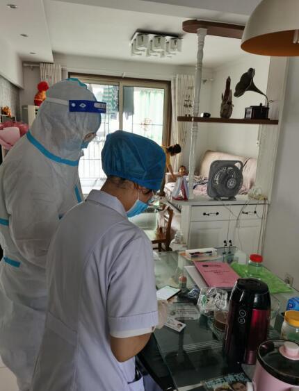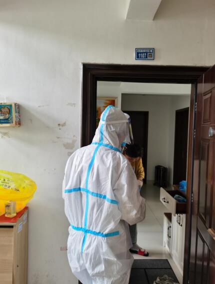 兩名醫(yī)護(hù)人員帶著檢測(cè)試劑敲開了老人的家門,登記信息、消毒、核酸檢測(cè)采樣,整個(gè)流程老人及家人十分配合,很快就完成了老人的核酸檢測(cè)采樣工作。老人的家人將醫(yī)護(hù)人員送出家門,并且表示給醫(yī)護(hù)人員工作添了麻煩,特別感謝他們能夠到家里來(lái)做核酸檢測(cè),讓老人更安心。