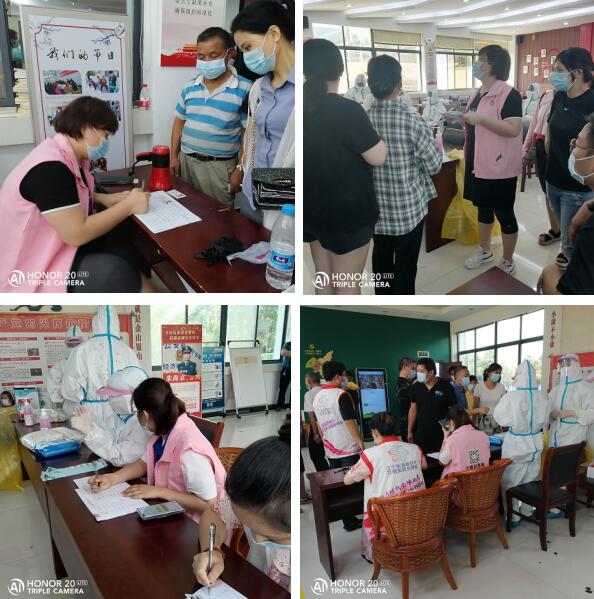 檢測(cè)現(xiàn)場(chǎng),江寧區(qū)江寧街道天然村婦聯(lián)、巾幗志愿者積極參與疫情防控工作,履職盡責(zé),沖鋒在前,她們穿梭在人群當(dāng)中,引導(dǎo)群眾進(jìn)行有序排隊(duì),幫助群眾登記信息,期間還積極解決群眾疑難問(wèn)題,維持現(xiàn)場(chǎng)秩序。