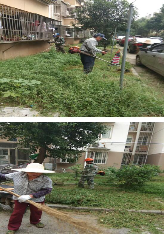 有的用除草工具將雜草連根除去,有的用手把草連根拔起,一切都有條不紊地進行著。清理完以后,還有工作人員專門用掃帚清掃現(xiàn)場。經過半天的努力,小區(qū)內的雜草基本清除干凈,小區(qū)的面貌煥然一新。