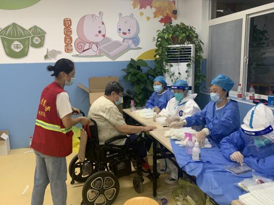 根據(jù)南京市開展全市全員核酸檢測(cè)通告要求,南京市棲霞區(qū)燕子磯街道電瓷社區(qū)于7月21日迅即啟動(dòng)社區(qū)全員檢測(cè)工作。為了方便行動(dòng)不便的特殊人群,電瓷社區(qū)殘協(xié)安排志愿者幫助行動(dòng)不便的居民進(jìn)行核酸登記,護(hù)送他們到核酸檢測(cè)點(diǎn)檢測(cè)。