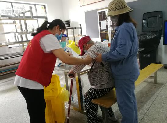 張奶奶年紀(jì)較大,身體殘疾,坐輪椅行動(dòng)不便,新時(shí)代文明實(shí)踐站專門安排志愿者接張奶奶到檢測點(diǎn)進(jìn)行檢測,期間志愿者細(xì)心服務(wù),陪同觀察,幫助她登記信息,檢測完畢之后,護(hù)送張奶奶回家。此外,另一位老年殘疾人李大爺,勉強(qiáng)能夠行走,志愿者一路貼心扶著李大爺,細(xì)心幫助他填寫信息,認(rèn)真核對(duì)每一個(gè)選項(xiàng),確認(rèn)無誤后,這才陪同李大爺進(jìn)行檢測,過程中,志愿者如同子女一般輕聲安慰老人不要緊張。