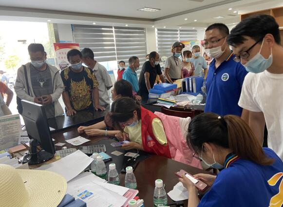 登記信息、協(xié)調(diào)現(xiàn)場秩序、帶隊入場檢測……在核酸檢測現(xiàn)場,社區(qū)網(wǎng)格員與志愿者們互相配合,穿梭于長長的隊伍之間,進行著一系列緊張而有序的工作。由于天氣炎熱,前來采樣的人數(shù)眾多,為了避免村民們中暑,網(wǎng)格員們便盡量安排村民進入室內(nèi)或者樹蔭下等待,并為村民們分發(fā)了礦泉水、人丹等物資,以防村民們在炎熱的天氣里中暑。