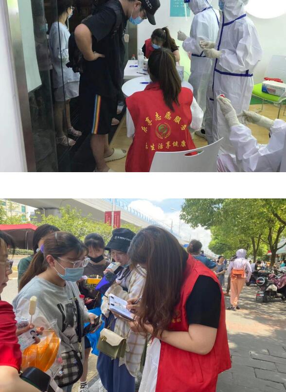 7月21日上午9點(diǎn),科苑社區(qū)青葵核酸檢測點(diǎn)上,周邊區(qū)域群眾來此核酸采樣。當(dāng)天天氣非常炎熱,群眾來核酸檢測的非常多,為加快檢測采樣進(jìn)度,分擔(dān)現(xiàn)場醫(yī)務(wù)人員、社區(qū)工作人員的工作量,南京樂享負(fù)責(zé)人汪友琴帶領(lǐng)全體社工自發(fā)組成的志愿隊(duì)伍,協(xié)助科苑社區(qū)檢測點(diǎn)疏導(dǎo)群眾有序排隊(duì)做核酸檢測,維護(hù)現(xiàn)場秩序、做登記、拍照、注冊預(yù)約碼!做后勤保障等服務(wù),為有序高效檢測提供支持和幫助。社工小雨說:“自己從事社會工作時(shí)間不長,但是今天讓我深刻體會到了社工的意義,并為自己身為社工能為群眾服務(wù)十分自豪!”當(dāng)天志愿服務(wù)一直持續(xù)到晚上11點(diǎn),本檢測點(diǎn)當(dāng)天服務(wù)人員達(dá)3000多人!