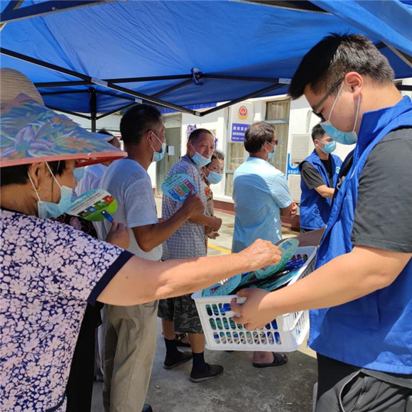 在這次的疫情防控工作中,焦敬鵬同志積極組織轄區(qū)內(nèi)志愿者,時(shí)刻沖在疫情防控第一線。20日晚,他連續(xù)撥打了40多個(gè)電話,摸排了轄區(qū)內(nèi)10名在祿口機(jī)場工作的群眾,并得到詳細(xì)信息。因時(shí)間緊迫,21日一大早社區(qū)門口就排起了核酸檢測的長隊(duì),焦敬鵬考慮到天氣炎熱,為避免群眾中暑,立刻上前發(fā)放疫情防控宣傳小扇子,服務(wù)的同時(shí)不忘宣傳。