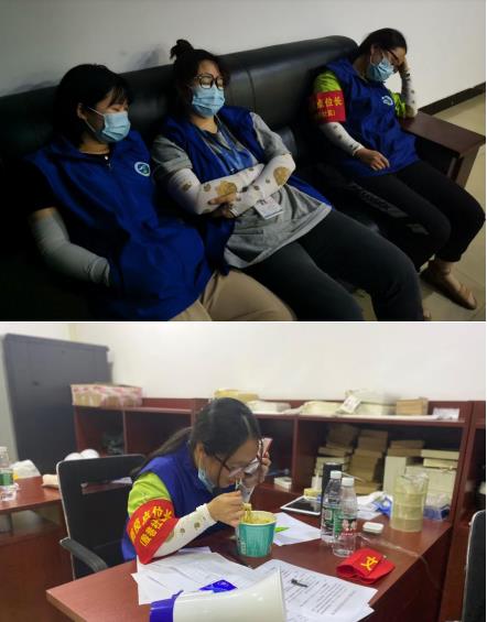為了讓有需求的居民第一時(shí)間聯(lián)系到社區(qū),他們的電話24小時(shí)接通,分發(fā)口罩、送水送糧、登記信息,每一件小事親力親為,你休息我上崗,只要居民打電話,就會(huì)有人回應(yīng)。社區(qū)黨委書記蔡道永和居委會(huì)副主任張麗與網(wǎng)格員共進(jìn)退,困了就睡在辦公室,餓了就隨便吃點(diǎn)方便食品,每個(gè)人的眼下都是濃濃的黑眼圈,但他們從未抱怨,因?yàn)樗麄冋J(rèn)為這些是他們應(yīng)當(dāng)也必須去做的事情。