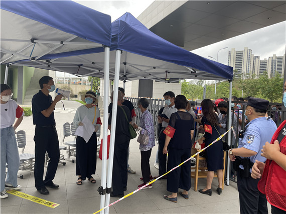 “請(qǐng)大家有序排隊(duì),配合出示健康碼”,在華僑城小學(xué)核酸檢測(cè)點(diǎn)大門(mén)處,短短的幾句話陳剛同志重復(fù)了上百遍,忙碌了一個(gè)上午還在核查排隊(duì)檢測(cè)人員的健康碼。接上級(jí)通知,7月25日,南京市棲霞區(qū)棲霞街道攝山村全體工作人員聞令而動(dòng)、沖鋒在前,用汗水踐行使命,助力開(kāi)展第二次全員核酸檢測(cè)工作安全、平穩(wěn)推進(jìn)。