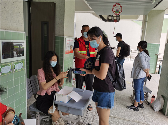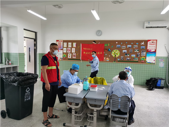 檢測(cè)點(diǎn)現(xiàn)場(chǎng)分區(qū)明確,設(shè)有場(chǎng)外排隊(duì)區(qū)、場(chǎng)內(nèi)信息采集區(qū)、采樣區(qū)等,黨員和志愿者各司其職,測(cè)量體溫、核驗(yàn)健康碼、幫助掃碼登記信息、維持秩序,工作有條不紊進(jìn)行中。“前些天,我們這里的大多數(shù)黨員和志愿者都參與了第一次的核酸檢測(cè)采樣工作,積累了不少經(jīng)驗(yàn),我相信我們能高效完成這次任務(wù)。”攝山村黨委書(shū)記陳俊同志說(shuō),面對(duì)接下來(lái)高強(qiáng)度的核酸檢測(cè)采樣工作,基層干部和志愿者將充滿斗志,全力以赴。