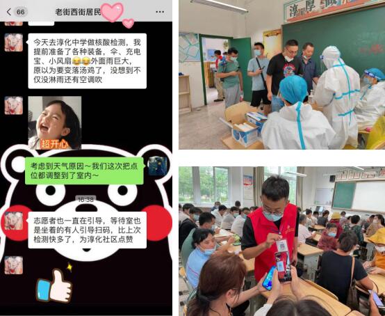 在檢測過程中,有這樣一個核酸檢測點(diǎn),特別引人注目,居民贊嘆它是一路清涼一路歡歌,它就是江寧區(qū)淳化街道淳化社區(qū)淳化中學(xué)核酸檢測點(diǎn)。該點(diǎn)位設(shè)置在中學(xué)內(nèi),前期,淳化中學(xué)積極配合社區(qū)布置核酸檢測現(xiàn)場,設(shè)置引導(dǎo)牌、流程圖,張貼一米線、布置核酸檢測等待室、規(guī)范消殺等,同時淳化中學(xué)也提供了居民等待處的空調(diào)和空氣凈化器,為前來排隊(duì)做核酸的居民送去了涼爽。