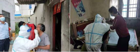 隨核酸檢測(cè)走向深入,錢家村行動(dòng)不便的老人引起了醫(yī)護(hù)人員和錢家村工作人員的特別注意。一些老人因重病在床,不方便行走。針對(duì)這一情況,尹家志同志決定帶著醫(yī)護(hù)人員上門給老人做核酸檢測(cè),真正做到全覆蓋,不落一戶、不漏一人。大家?guī)е鴻z測(cè)試劑敲開了老人的家門,登記信息、消毒、核酸檢測(cè)采樣,整個(gè)流程老人及家人十分配合,很快就完成了老人的核酸檢測(cè)采樣工作。老人的家人將醫(yī)護(hù)人員送出家門,并且表示給錢家村工作添了麻煩,特別感謝他們能夠到家里來做核酸檢測(cè),讓大家更安心。