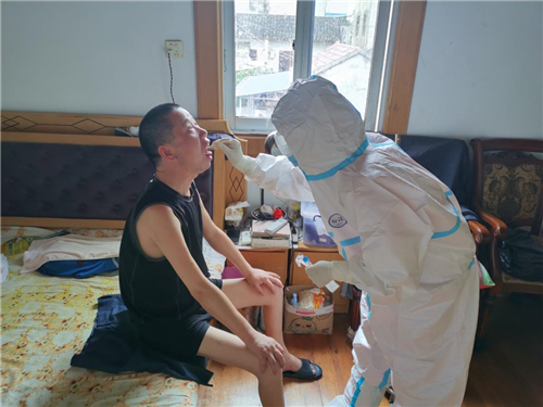 “你好,我們是上門進行核酸檢測的。”為確保全員核酸檢測應(yīng)檢盡檢、愿檢盡檢、不漏一人、不漏一戶,網(wǎng)格員、村委會干部、醫(yī)護人員主動上門為轄區(qū)內(nèi)的“五包一”人員進行核酸檢測,登記人員信息、撕開棉簽包裝、指導(dǎo)村民張大嘴巴......核酸檢測中,醫(yī)護人員認真幫助村民進行檢測,網(wǎng)格員、村委會干部耐心做好溝通和安撫工作,通過交流及時了解他們的身體健康狀況,切實做到“早發(fā)現(xiàn)、早報告、早診斷、早隔離、早治療”。