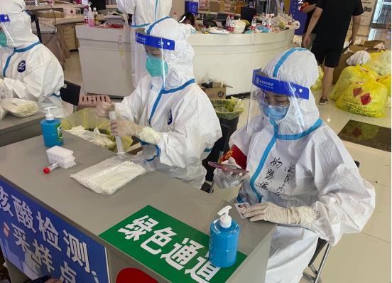 “疫情就是命令,防控就是責任。作為一名青年黨員,在組織需要我們有責任有義務保證群眾的生命健康安全,守護家鄉(xiāng)的安定與和諧,我請求成為一名疫情防控志愿者......”在殷巷社區(qū)防疫的一線,預備黨員楊燚媛主動聯系社區(qū)工作人員申請加入疫情防控中來,用自己的熱血青春書寫戰(zhàn)“疫”擔當。在殷巷社區(qū)工作人員的安排下,她成為了全員核酸檢測現場負責掃碼的志愿者,認真指導每一位前來進行核酸檢測的居民打開小程序、自主錄入信息、進行掃碼。