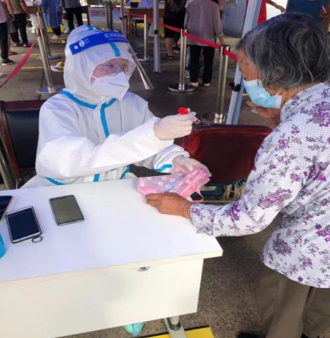 在疫情防控工作中,她們各司其職,并肩而戰(zhàn),即是母女,亦是戰(zhàn)友。不管是陰雨連綿,還是艷陽(yáng)高照,她們始終保持高度地?zé)崆橐龑?dǎo)前來(lái)接種的群眾填寫表格、測(cè)量體溫、保持一米距離進(jìn)行排隊(duì)。面對(duì)居民群眾對(duì)于新冠疫苗的種種困惑,她們一一耐心解答,闡明接種注意事項(xiàng),熱情周到、耐心的服務(wù)贏得了前來(lái)接種群眾的好評(píng)和認(rèn)同。