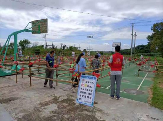 “人員混流降低核酸檢測效率,不僅容易引發(fā)村民間的矛盾,也容易引起人員聚集,造成安全隱患。”淳化街道民主村針對莊上和王居寧監(jiān)測點現(xiàn)有實地情況,連夜緊密鑼鼓對站點旁的籃球場進行整合利用,組織工人用鋼管等設施建設對籃球場進行微改造,形成排隊通道。同時,在地面每個一米貼上警示貼,提醒大家有序、規(guī)范排隊。