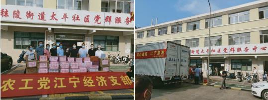近日,南京市江寧區(qū)秣陵街道太平社區(qū)積極開展疫情防控。農(nóng)工黨江寧經(jīng)濟支部、南京廣播電視集團向社區(qū)捐贈抗疫物資,支援一線疫情防控,與社區(qū)攜手戰(zhàn)“疫”。