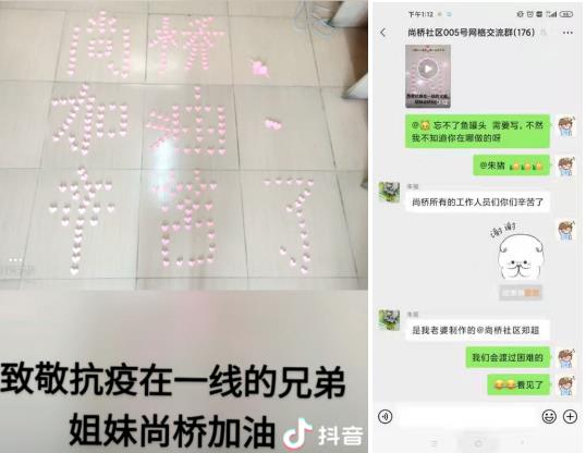 面對新型冠狀病毒的肺炎疫情,社區(qū)充分發(fā)揮引領(lǐng)作用,通過微信群等方式廣泛發(fā)動(dòng)志愿者帶頭,團(tuán)結(jié)群眾,積極參與疫情防控工作。在社區(qū)的牽頭下,“小組制”得到了落地。隔離人員的物資需求統(tǒng)一匯報(bào)給小組長,再由小組長轉(zhuǎn)發(fā)給社區(qū)工作人員統(tǒng)一代購,幾天下來,他們逐漸熟悉隔離生活、逐漸認(rèn)可社區(qū)人員。居民為感謝社區(qū)志愿者,還自制了一段視頻,將他們認(rèn)真負(fù)責(zé)和悉心服務(wù)的全過程記錄了下了。志愿者與居民相互守望幫扶,成為基層防控服務(wù)的一道“暖心”風(fēng)景線。
