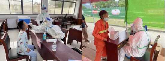 天然村的社區(qū)工作人員、醫(yī)護(hù)人員和志愿者們?cè)俅螉^戰(zhàn)在一線,爭(zhēng)分奪秒地為社區(qū)群眾進(jìn)行核酸檢測(cè)。烈陽(yáng)高照下,醫(yī)護(hù)人員們被防護(hù)服包裹地嚴(yán)嚴(yán)實(shí)實(shí)的身軀,早已大汗淋漓。