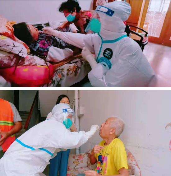 為了全面保障廣大居民的生命安全,醫(yī)護(hù)人員以及社區(qū)工作人員全部穿上厚厚的防護(hù)服進(jìn)入居民家中。每到一位殘疾人家中,醫(yī)護(hù)人員都會(huì)對(duì)他們進(jìn)行詳細(xì)的信息登記,一邊耐心安撫,一邊小心、迅速地完成采樣,手法嫻熟,盡量減少殘疾人群體的不適感,讓他們感到耐心又舒心。當(dāng)工作人員脫下防護(hù)服時(shí),渾身都被汗水浸濕,顧不上休息,就又抓緊時(shí)間趕往下一家進(jìn)行核酸檢測(cè)。