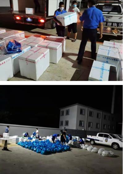 疫情爆發(fā)以來,街道執(zhí)法大隊(duì)主要負(fù)責(zé)防疫物資的儲(chǔ)備、調(diào)配、運(yùn)送等工作,嚴(yán)格記錄物資的接收、保管、整理、出庫等情況,為奮戰(zhàn)在防控一線的人員和居民群眾提供物資保障。8月2日晚9:00,萬籟俱寂,農(nóng)開公司門口燈火通明,一片繁忙。20名街道執(zhí)法大隊(duì)人員組成的防疫物資“保障小分隊(duì)”連夜加緊打包大米、蔬菜等,將車上的大米、油、雞蛋、蔬菜等逐一卸載搬運(yùn)下來,隨后進(jìn)行有序分揀、打包、裝運(yùn)等工作,一直忙到凌晨12:00。目前440余袋大米,220余桶油,4400余枚雞蛋,220余袋蔬菜等生活物資迅速完成了打包、裝運(yùn)。這些分揀好的物資連夜裝車發(fā)往了轄區(qū)內(nèi)各村(社區(qū)),第一時(shí)間保障了群眾的“米袋子”和“菜籃子”。