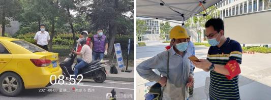 面對疫情,物業(yè)加大防控力度,第一時間設置臨時出入口,加強十月園區(qū)出入管理,對進出的車輛、人員進行健康碼檢查、人員分流,進行體溫測量,堅守防疫一線。
