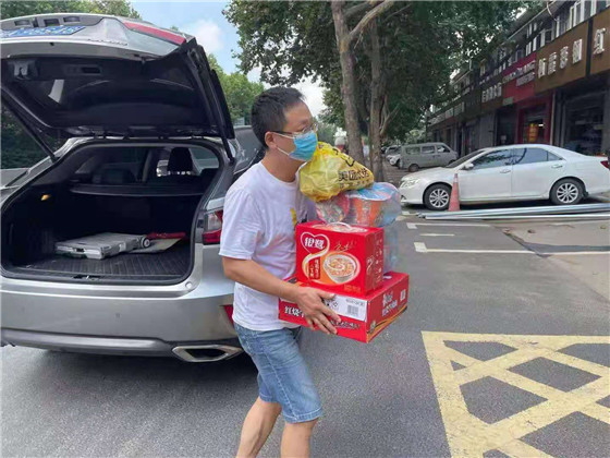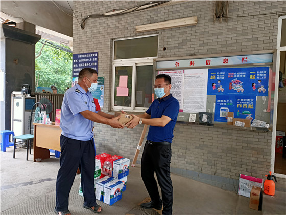 8月5日,棲霞社區(qū)黨員陳來(lái)寶來(lái)到九鄉(xiāng)河小區(qū)與楓翔小區(qū)的防疫檢查站,為疫情防控一線值守人員送上6箱礦泉水、1箱冰棒、4箱牛奶,為疫情防控貢獻(xiàn)力量。他表示:“自疫情發(fā)生以來(lái),社區(qū)黨員干部始終戰(zhàn)斗在抗擊疫情的第一線,為了保障人民群眾的生命健康安全,每日加班加點(diǎn)進(jìn)行疫情防控工作。作為一名共產(chǎn)黨員,我應(yīng)當(dāng)發(fā)揮表率作用,盡自己的綿薄之力,協(xié)助防疫工作人員,黨民同心,共同渡過(guò)疫情難關(guān)。”森林公安李齊天老師也拖著一車物資到卡點(diǎn)捐贈(zèng)。“感謝曹阿姨送來(lái)清涼爽口的糖片、檸檬片”“感謝志愿者送來(lái)的4箱口罩、1箱消毒水”······微信群里紛紛點(diǎn)贊。除此之外,還有很多的愛(ài)心居民、企業(yè)也給社區(qū)送來(lái)了防疫物資,例如仙林碧水源污水處理廠、棲霞古寺、宏鼎裝飾城、棲霞車隊(duì)等。