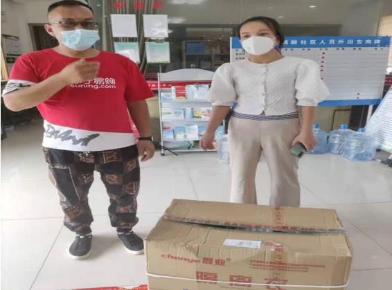 社區(qū)企業(yè)老板任杰為卡口值班人員送來N95口罩