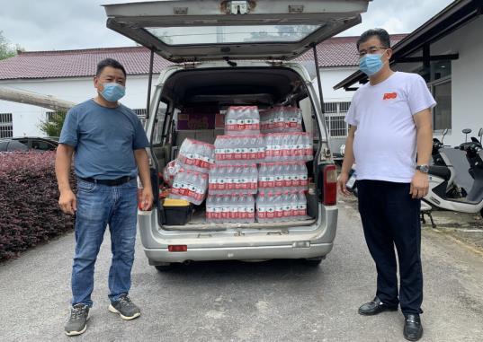 青年黨員平家順捐贈(zèng)礦泉水、飲料、帳篷等物資