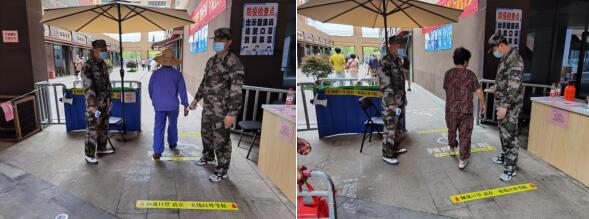 “請(qǐng)大家按照一米線,排好隊(duì)”,“請(qǐng)用手機(jī)掃描這個(gè)二維碼”在石埠灣菜場(chǎng),群眾有序排隊(duì)進(jìn)入現(xiàn)場(chǎng)買菜。退役軍人志愿者們頂著烈日,冒著高溫,積極維持現(xiàn)場(chǎng)秩序,引導(dǎo)群眾有序排隊(duì),耐心提醒群眾做好自我防護(hù)和進(jìn)入前的準(zhǔn)備工作,用實(shí)際行動(dòng)踐行新時(shí)代退役軍人聽(tīng)黨指揮、服務(wù)人民、英勇善戰(zhàn)等優(yōu)良傳統(tǒng),更體現(xiàn)出了埠橋村社區(qū)退役軍人的責(zé)任與擔(dān)當(dāng),防疫路上“我們”不孤單。一日入伍,軍魂入骨,面對(duì)疫情,退役軍人志愿者們紛紛表示,我們是退伍不褪色,關(guān)鍵時(shí)刻我們上,盡我們所能,配合社區(qū)工作,為疫情防控貢獻(xiàn)一份力量。