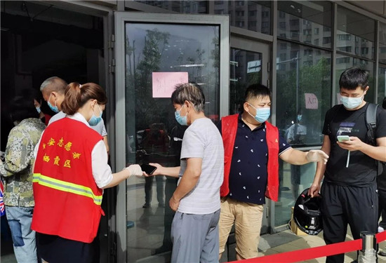 在向上社區(qū)第三輪全員核酸檢測(cè)采集點(diǎn),他們有的在門口測(cè)量體溫查看健康碼;有的在現(xiàn)場(chǎng)引導(dǎo)維持秩序;有的在登記人員名單......