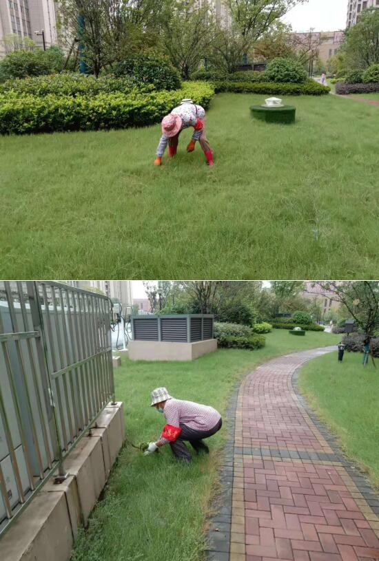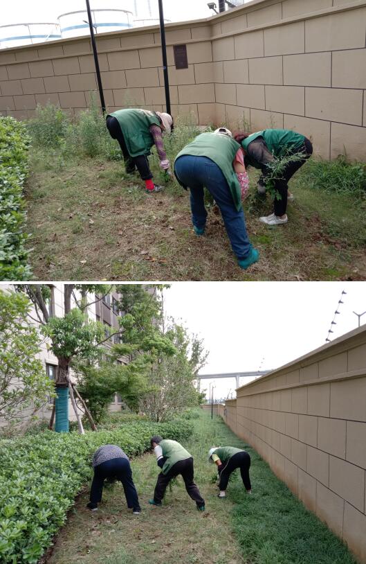 清理綠化雜草 扮靚小區(qū)“顏值”