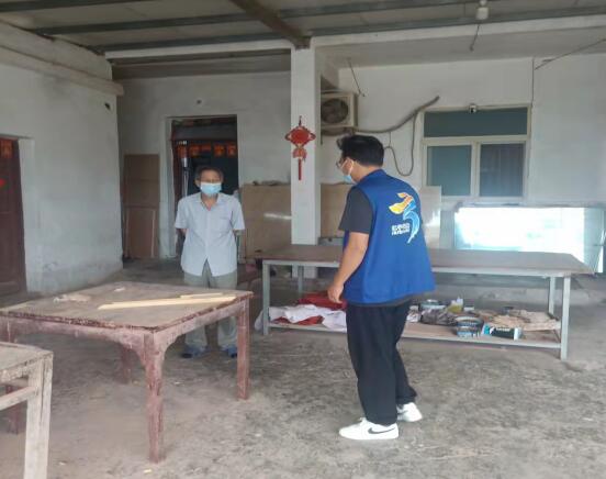為切實(shí)保障南京市江寧區(qū)湖熟街道晶明村疫情防控措施落實(shí)落細(xì),8月22日,晶明村網(wǎng)格員劉庭對(duì)網(wǎng)格內(nèi)所有木器小加工廠再次進(jìn)行走訪,保障疫情防控常態(tài)化階段的安全生產(chǎn),保障好轄區(qū)內(nèi)安全生產(chǎn)環(huán)境。
