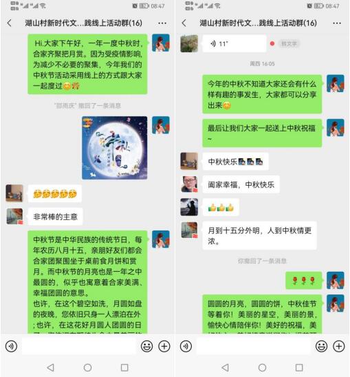 為了迎接中秋節(jié)的到來,同時減少不必要的人員聚集,9月16日,南京市江寧區(qū)湯山街道湖山村新時代文明實踐站的志愿者們組織舉辦了一場主題為“濃情中秋——我心中的中秋”的線上活動。