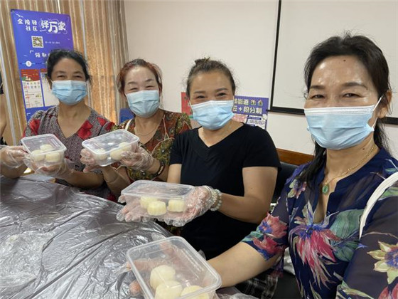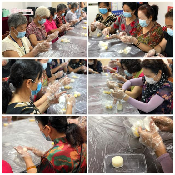 本次活動(dòng),社區(qū)工作人員與烘焙老師共同帶領(lǐng)到場(chǎng)的居民親手制作月餅,迎接傳統(tǒng)佳節(jié)。“以前都是買月餅,還沒有做過月餅”,大家心情激動(dòng),滿心期待著。準(zhǔn)備工作結(jié)束后,老師一步步的介紹制作手工月餅的過程和動(dòng)作要領(lǐng),并親自示范月餅的制作過程。實(shí)操過程中,大家按照老師講解的步驟:揉面團(tuán)、包餡、放模具內(nèi)按壓成型,每一道程序都忙得不亦樂乎。大家一邊做月餅,一邊嘮家常,歡聲笑語不斷。通過近一小時(shí)的努力,精美誘人的月餅做好了。