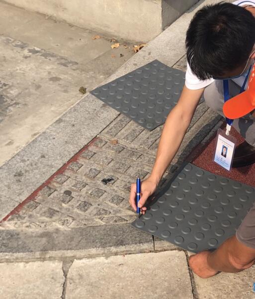 志愿者早早地就帶上了盲道貼紙,來到了堯和西路盲道旁,公眾委員也積極參與進(jìn)來,因電阱蓋被阻斷的盲道粘貼了盲道貼,缺少的阻斷的盲道也完成了修復(fù),雖然修復(fù)工作十分的麻煩,但志愿者們和公眾委員們也不必辛苦,辛勤服務(wù),努力保障盲人的安全出行。希望能夠修復(fù)更多的不規(guī)范盲道。