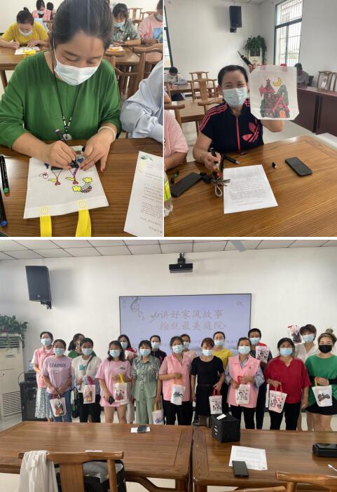 為把活動推向高潮,志愿者還發(fā)動大家在環(huán)保袋上繪出自己理想的美麗庭院。“房子設(shè)計成別墅、院落里各類鮮花爭奇斗艷、瓜果飄香,綠意盎然。”大家妙筆生花,不一會兒,一幅幅美麗的庭院風(fēng)光在環(huán)保袋上活靈活現(xiàn)。