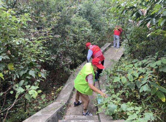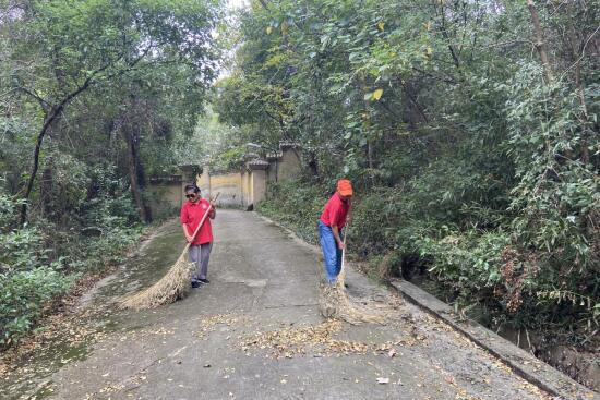 當(dāng)天,老黨員們拿著不同的工具來到了后山步道,互相分配路段和任務(wù),對久久無人打掃的步道進(jìn)行清理。有的老黨員拿著掃帚清掃地面上的落葉,也有的拿著夾子,將步道邊植被處的垃圾撿拾起來,大家分工合作,將整條休閑步道打掃得干干凈凈。入黨幾十年的趙大爺說:“這個步道是群眾們經(jīng)常來的地方,我們把它打掃干凈了,大家看著也舒服嘛!”