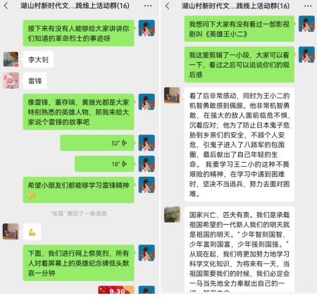 每段歷史都不能被遺忘,每位英雄都值得被紀(jì)念。為引導(dǎo)轄區(qū)青少年緬懷革命烈士,弘揚(yáng)烈士精神,培養(yǎng)青少年愛國主義精神,在9月30日烈士紀(jì)念日到來之際,南京市江寧區(qū)湯山街道湖山村新時(shí)代文明實(shí)踐站聯(lián)合婦聯(lián)、關(guān)工委組織開展線上愛國教育活動。